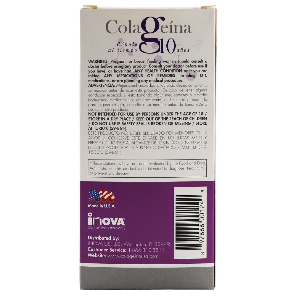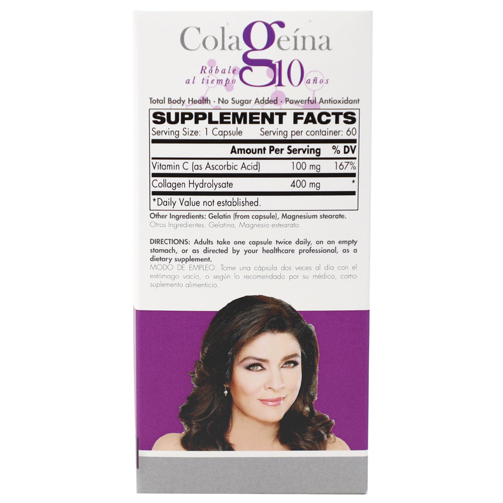 Colageina 10, 60 Capsules, makes it easier for your body to absorb collagen, which is essential for healthy skin, hair, nails and joints. Colageina 10 also promotes elasticity and hydration of the skin, for a younger look, improves skin smoothness, minimizes fine lines and wrinkles, reducing the signs of aging. Revitalize your body from the inside out, in an easier way for your body to absorb collagen. Collagen colageina 10 Fine line Wrinkle Reducer, for stronger nails, healthy joints. With Vitamin C. For Adults only.