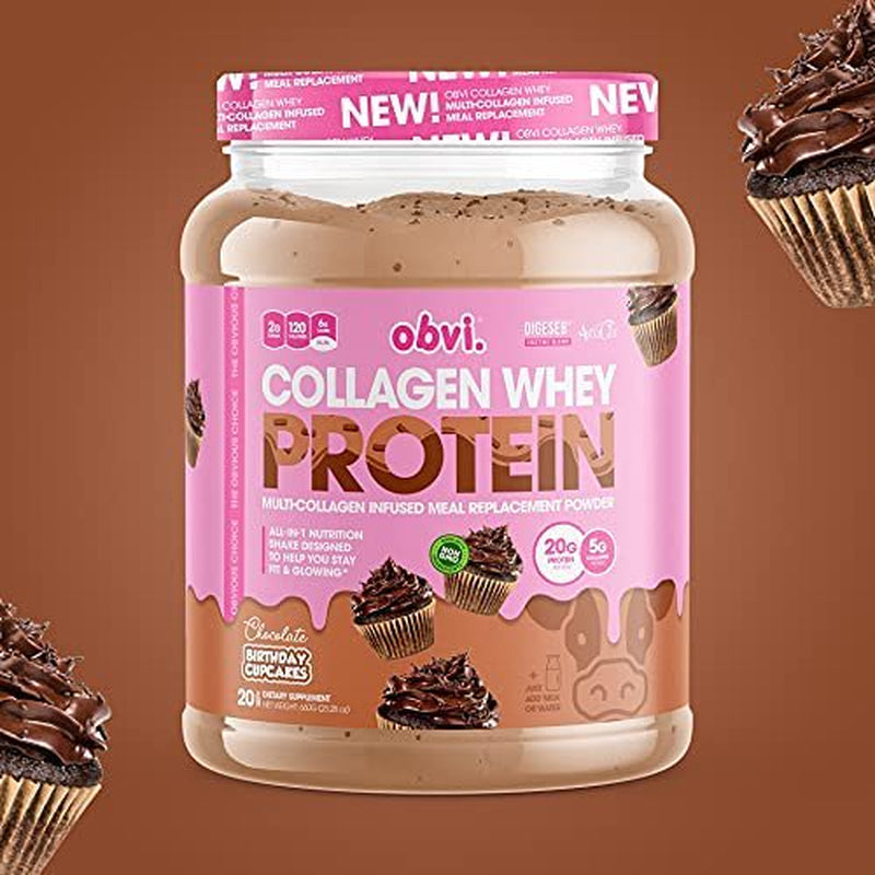 Collagen Whey Protein by Obvi - Chocolate Birthday Cupcakes