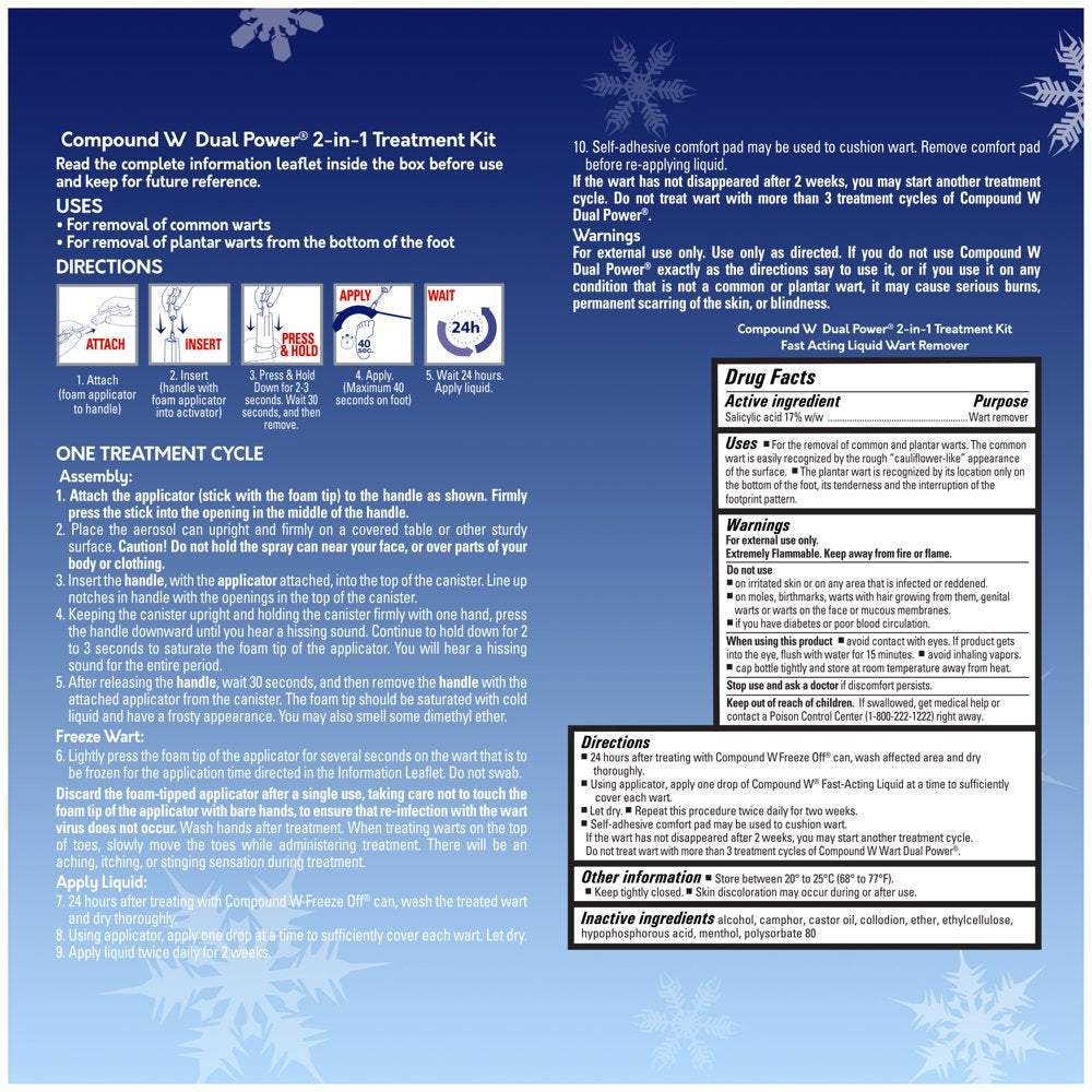 - Compound W 2-in-1 treatment contains both a Freeze Off and a Salicylic acid liquid wart remover; Easy to use in 4 easy steps