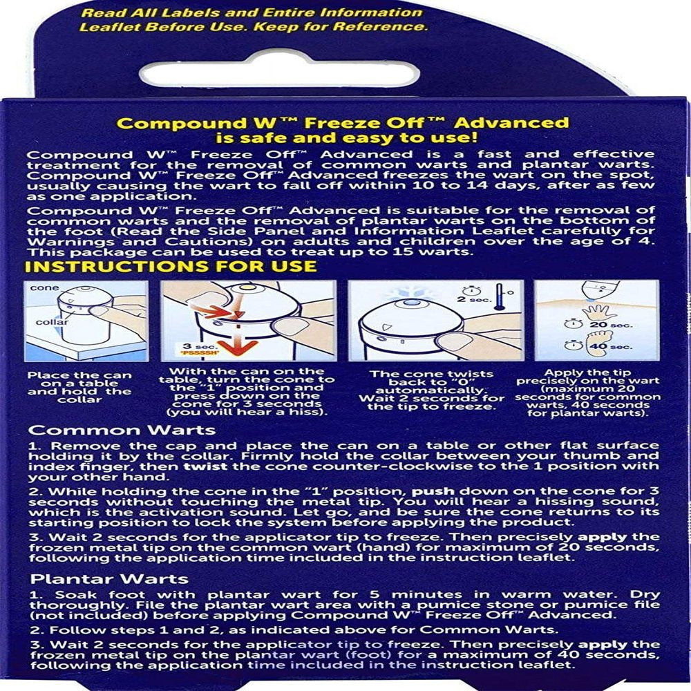 - Contains 1 pack of Compound W Freeze Off Advanced Wart Remover with Accu-Freeze, 15 Applications