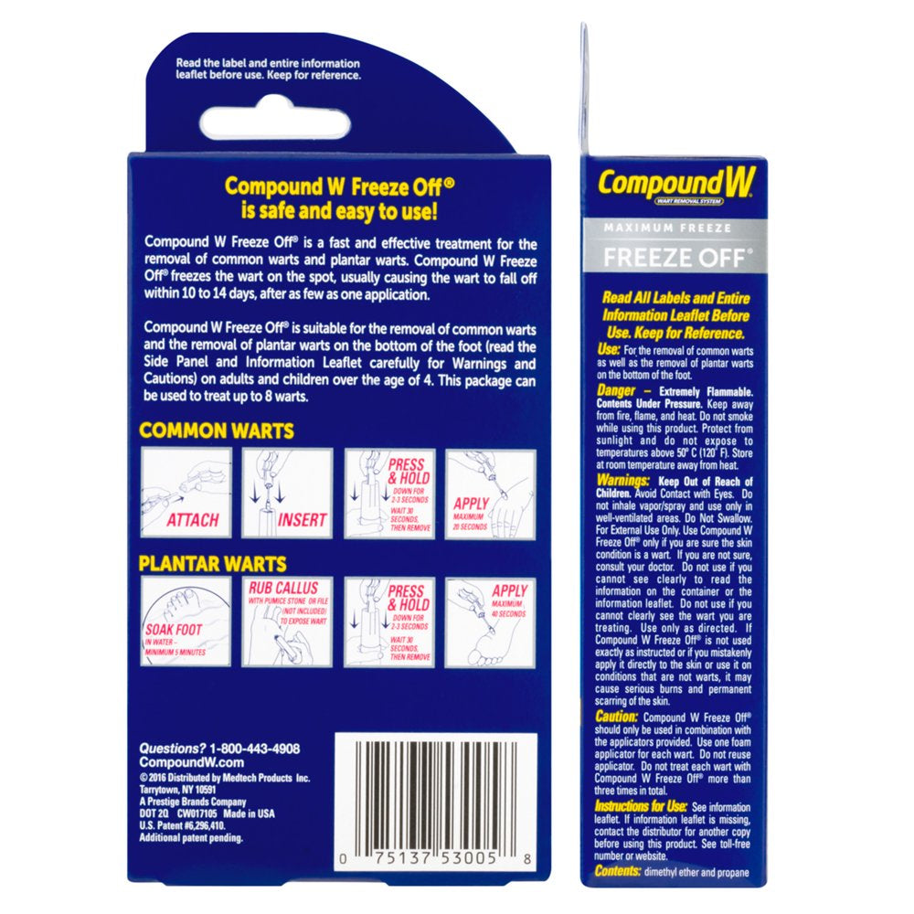 - Compound W Freeze Off safely, easily and effectively removes common and plantar warts in as few as 1 treatment