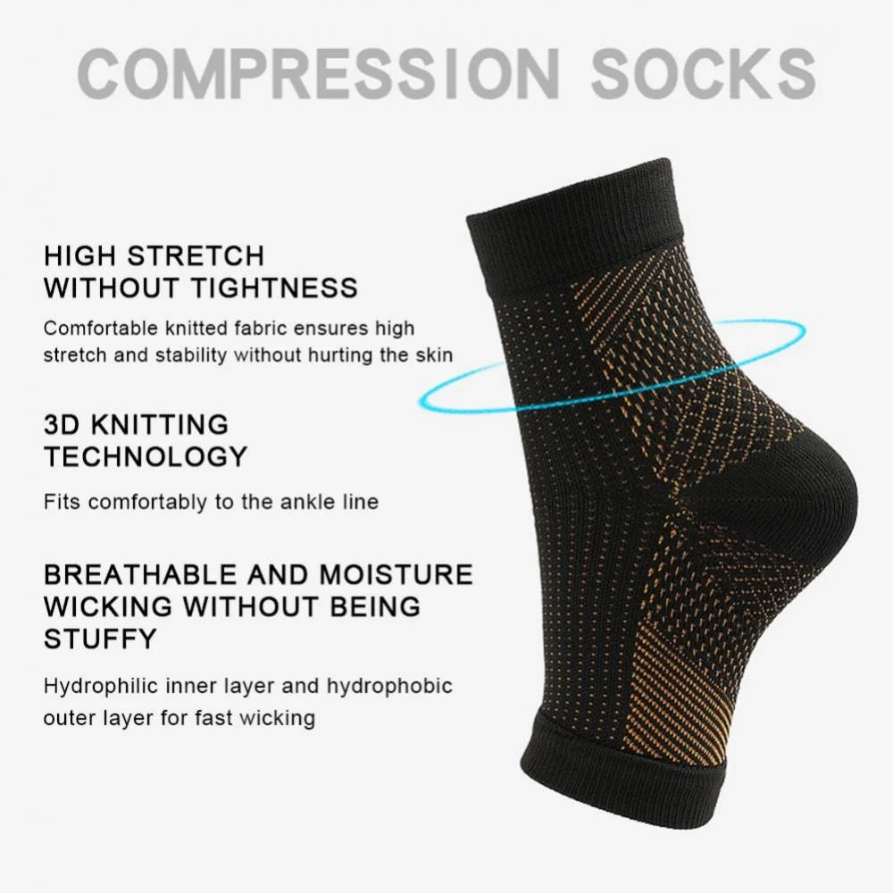 - 【Relieve foot pain】: These neuropathy socks superior support on your ankle, heel and arch, which stabilize your ankle and protect your feet, minimize the risk of injury. The Ankle Compression Sleeve speed up recovery from swelling, plantar fasciitis, neuropathy, muscle fatigue, edema and achilles tendon. Our ankle protection sleeves provide pain relief from heel pain, joint pain, arch pain, arthritis pain, bone spurs, ankle sprain and other sports injuries.