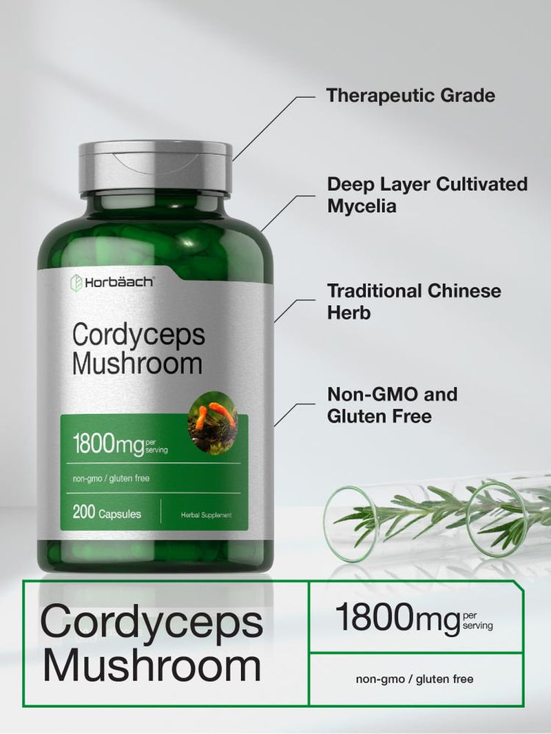 Our Cordyceps Mushroom supplement makes it simple to add this fungi to your routine. Quick-release capsules offer 2,000 mg per serving of deep-layer cultivated mycelia biomass. Our formula is Non-GMO and naturally free of artificial sweetener and preservatives. Get premium support at an incredible value with Horbaach!