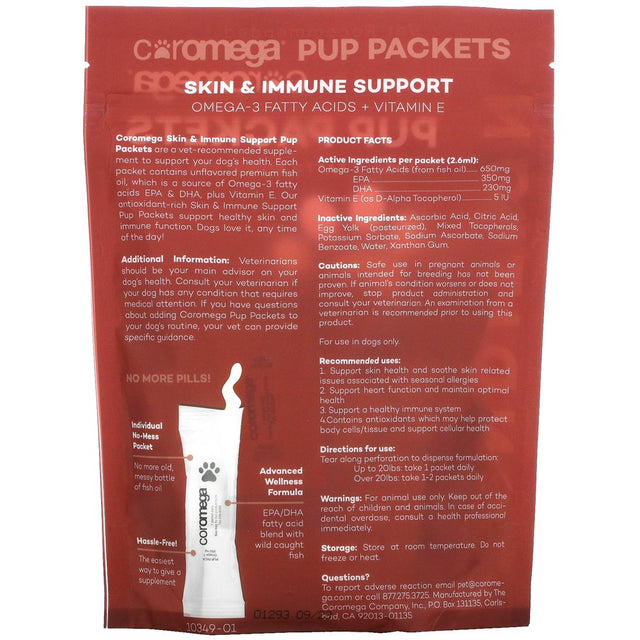 Coromega Pup Packets, Skin & Immune Support, 30 Squeeze Packets, 2.6 Ml Each
