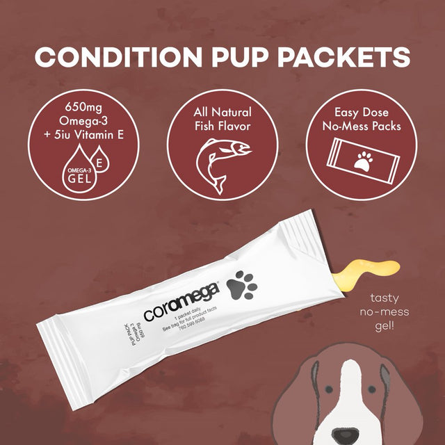 THE BEST OMEGA 3 FOR YOUR DOG Treat your pet to the best omega 3 supplement there is! Your dog will love the Coromega Pup Packet - just snip or tear and squeeze the delicious emulsified pudding for your dog to enjoy any time or any place.