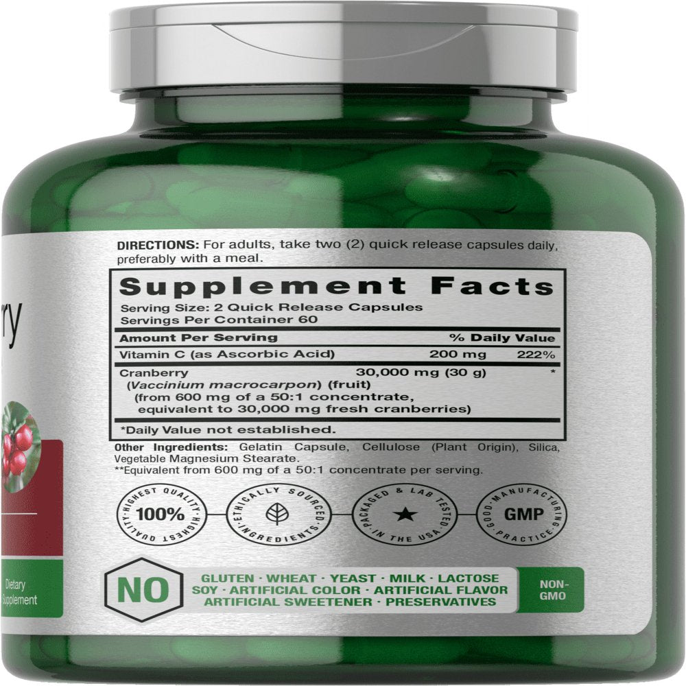 - Triple Strength Cranberry Concentrate with Vitamin C, with 30,000 MG equivalent per serving