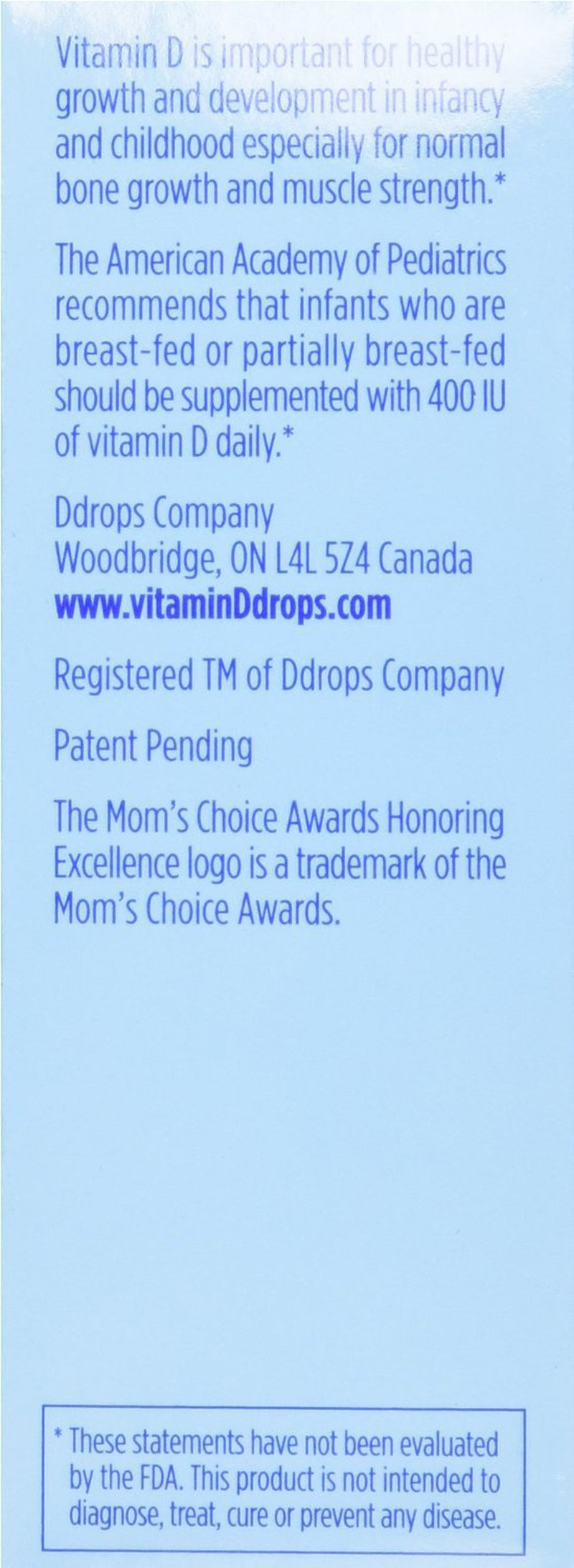 Ddrops Baby 400 IU, Vitamin D, 90 Drops 2.5Ml (0.08 Fl.Oz)