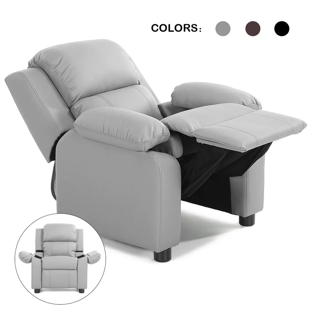 Deluxe Padded Kids Sofa Armchair Recliner Headrest Children W/ Storage Arms Gray