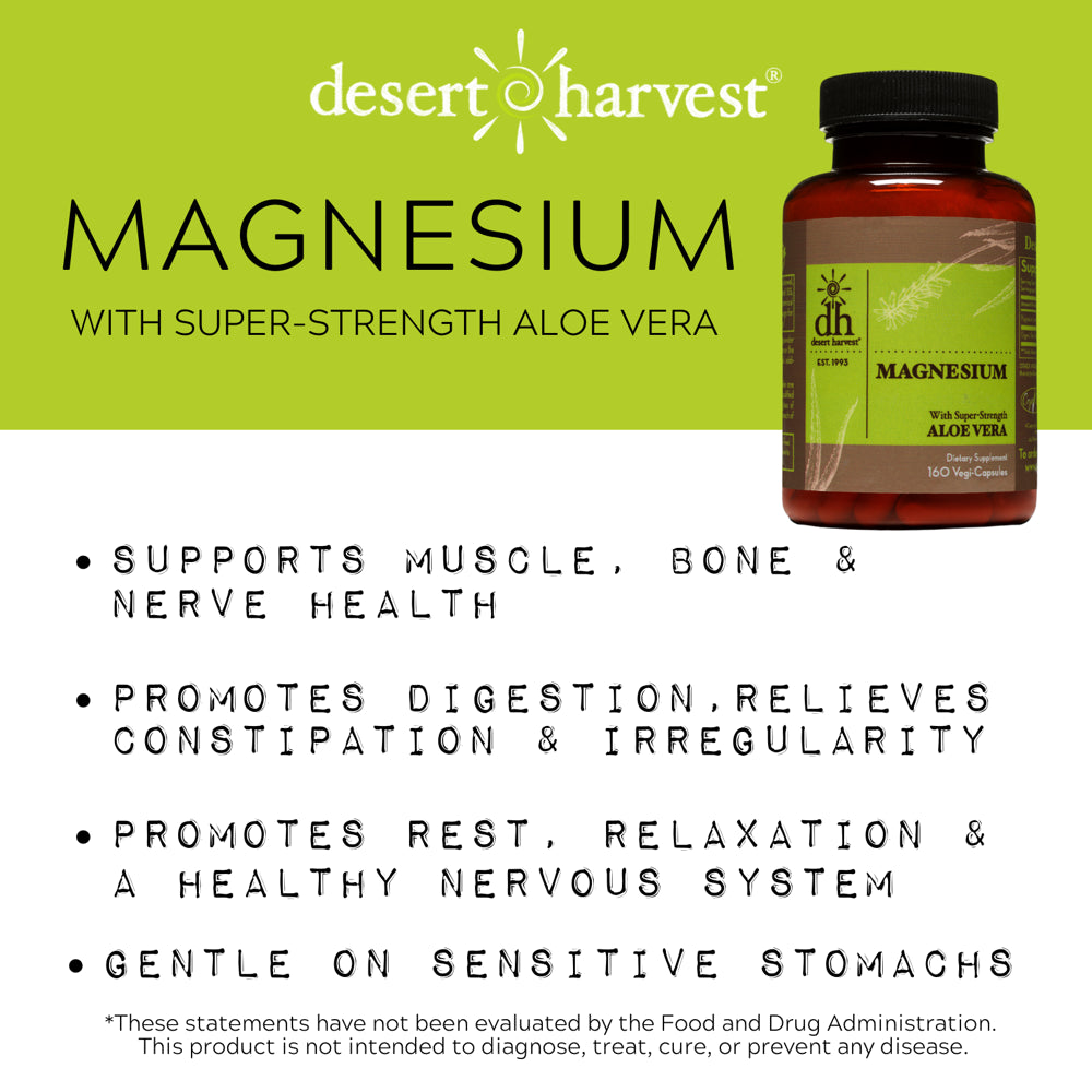 Desert Harvest Magnesium Oxide Supplement with Aloe Vera for Absorption, for Immune Support, Muscle Recovery, Digestion, Relaxation - 160 Capsules