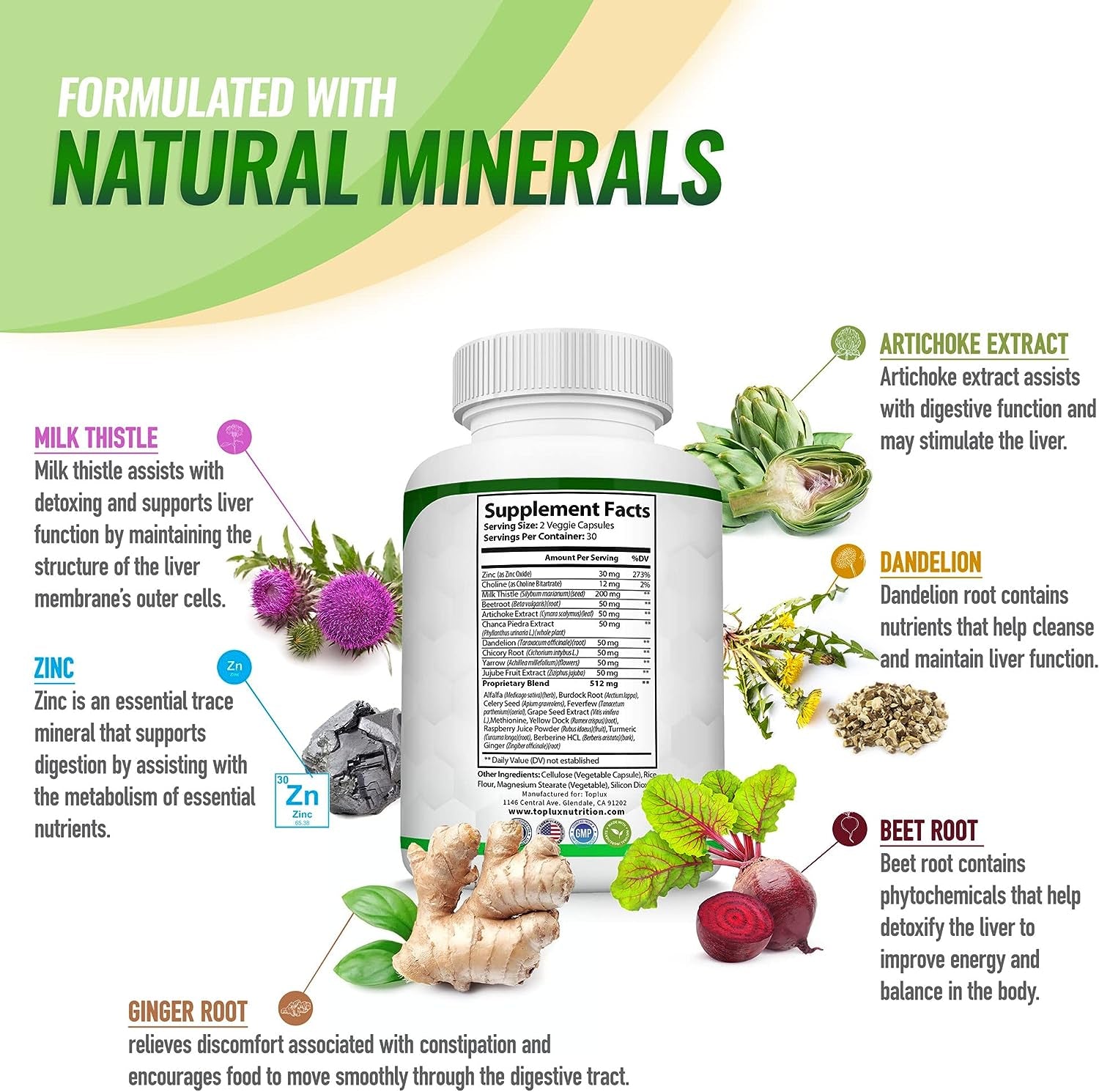 Detox Cleanse Liver Support & Repair Formula - Liver Cleanser Natural 5 Day Detox, Support Digestion System, Flush Toxins & Urinary Tract, Milk Thistle Extract 25+ Herbs, 60 Capsules, Toplux Nutrition