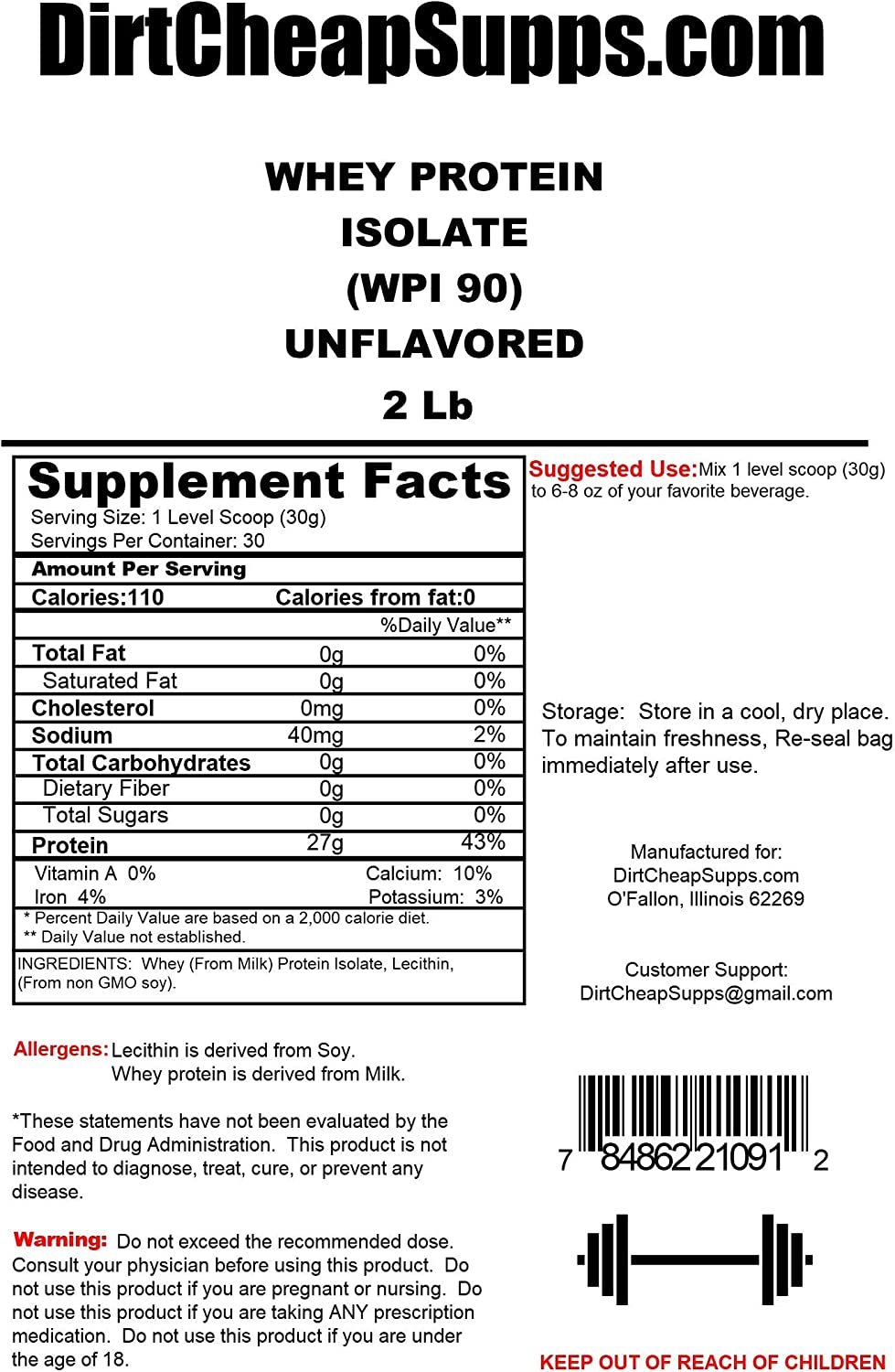 Dirtcheapsupps Whey Protein Isolate Unflavored 2Lb. 30 Servings with 27G of Protein per Scoop.