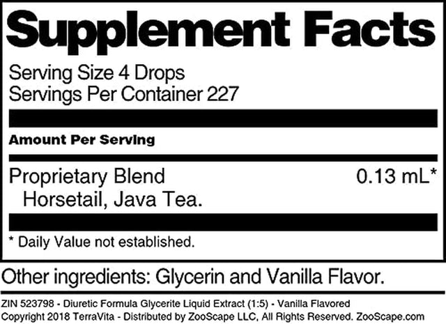 - Diuretic Formula Glycerite Liquid Extract (1:5) - Vanilla Flavored (1 oz, ZIN: 523798)