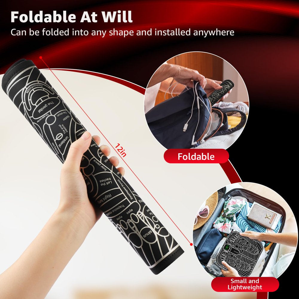 - 【Wireless & Remote Control & Portable】Foot massage is very light and small, with a wireless design. It can be used whether you are at home, in the office, or outdoors. At the same time, we use high-quality mat materials and a foldable design, and the mat can be easily rolled up and carried. We are also equipped with a remote control. After you activate the "M" key on the host, you can release your hands without bending down to control it.