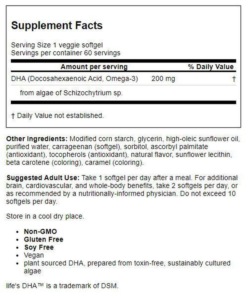 Doctor'S Best Vegan Dha from Algae with Life'S Dha 200 Mg 60 Veg Sgels