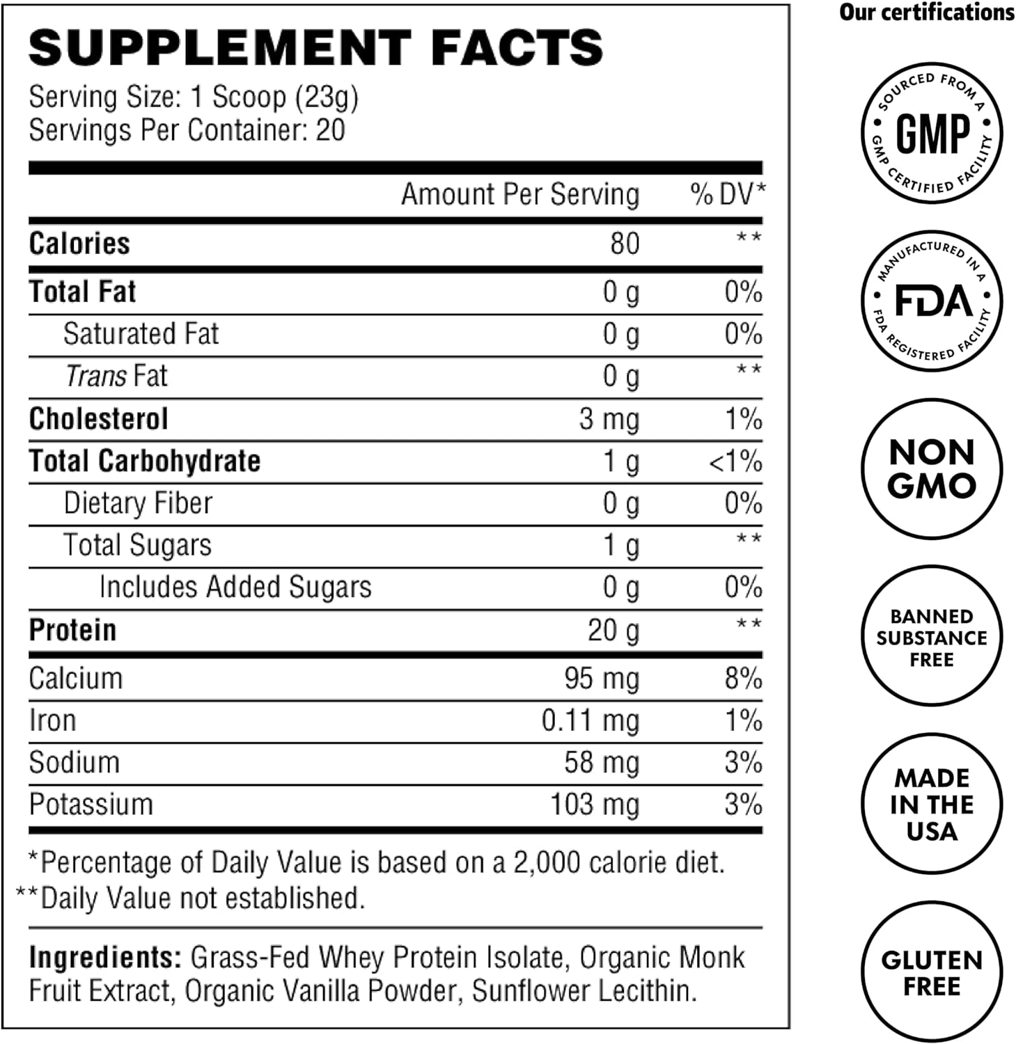 Pure, premium grass-fed pasture raised whey protein isolate and organic Cacao in a real-food blend. 5 pure ingredients , No Gums, Artificial flavors, sweeteners, or fillers