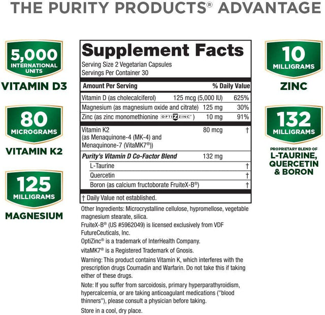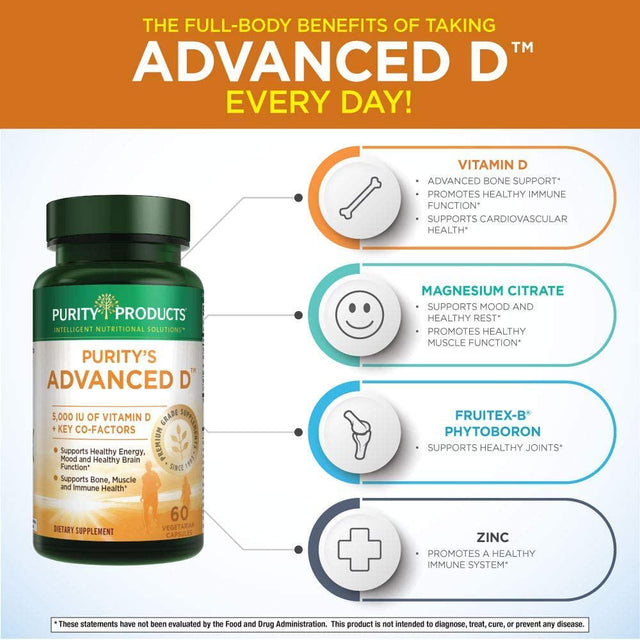 Dr. Cannell'S Advanced D from Purity Products - Vitamin D3 Super Formula - Packed with Vitamin D, Vitamin K2, Zinc, Magnesium Citrate, Boron and Taurine - 60 Vegetarian Capsules