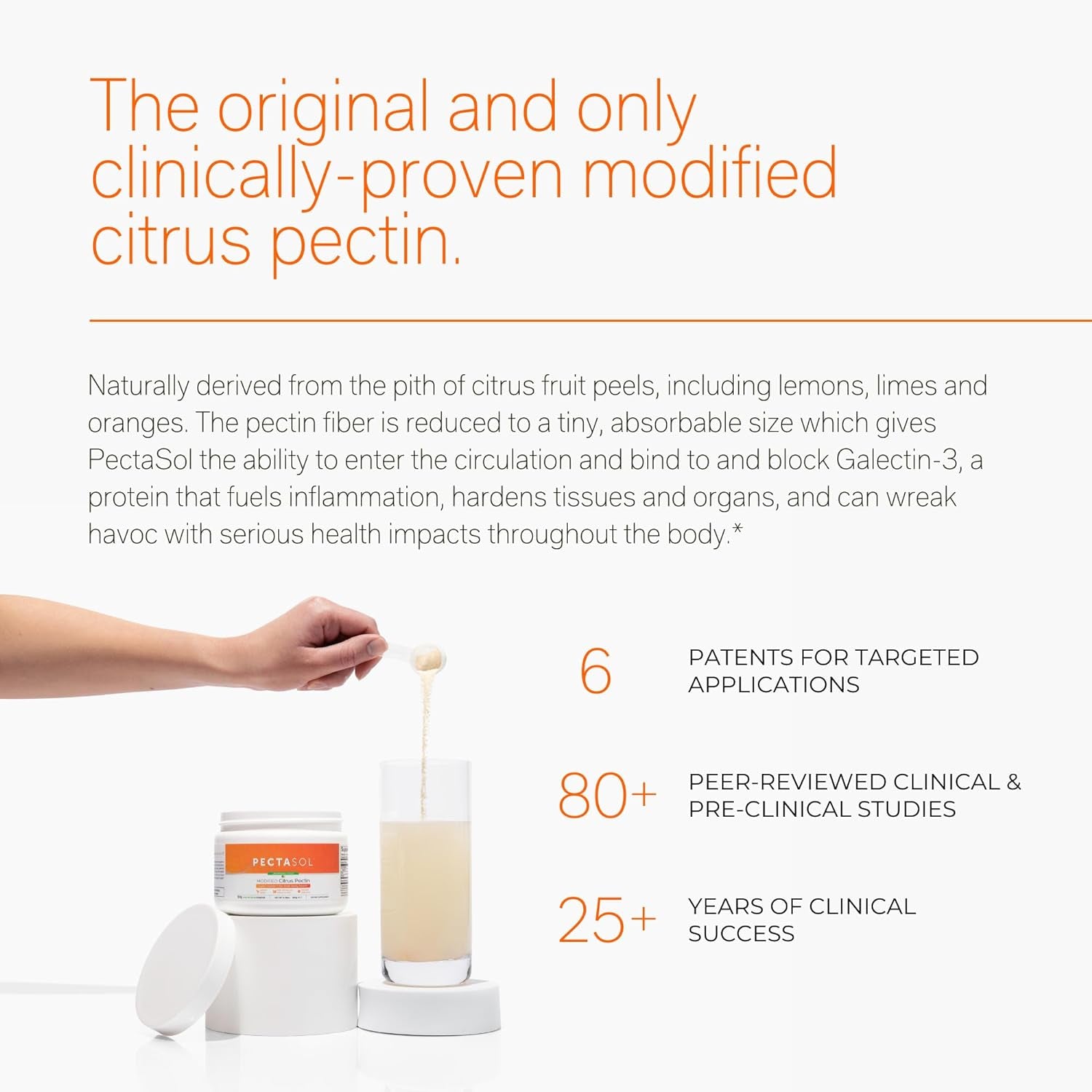 - THE ORIGINAL CLINICALLY-PROVEN MODIFIED CITRUS PECTIN 🍋 PectaSol is the most effective Modified Citrus Pectin available, the ONLY patented formula producedwith a proprietary enzymatic process giving it the exclusive ability for better absorption than other brands. Over 50 published studies show PectaSol immune supplements help support cellular health, healthy Galectin-3 levels, cardiovascular health, prostate health, and immune system response