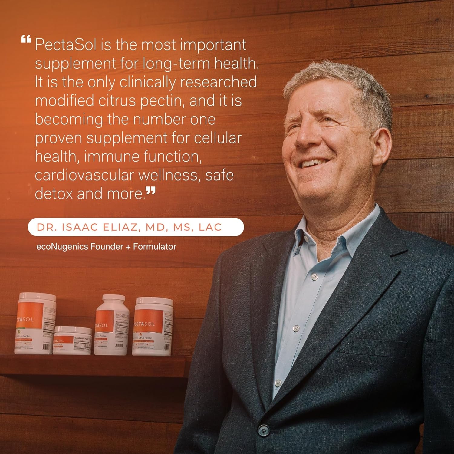 - PROFESSIONALLY FORMULATED BY DR. ISAAC ELIAZ M.D. 🍋 PectaSol is professionally formulated in the USA by leading authority of integrative medicine & cellular health, Dr. Isaac Eliaz (M.D., L.Ac.), founder of ecoNugenics. With 25+ years of clinical and research experience, Dr. Eliaz’s formulas have been extensively validated in the scientific literature, demonstrating benefits for our most critical areas of health.