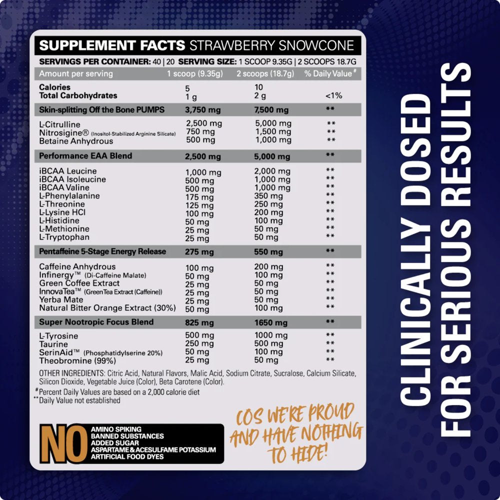 In addition to the other pump ingredients, Betaine Anhydrous has been added. Studies have found that supplementation improved body composition, arm size, bench press work capacity and power. ⁴ These findings can be explained by Betaine’s involvement in the production of carnitine, which plays a critical role in energy production.