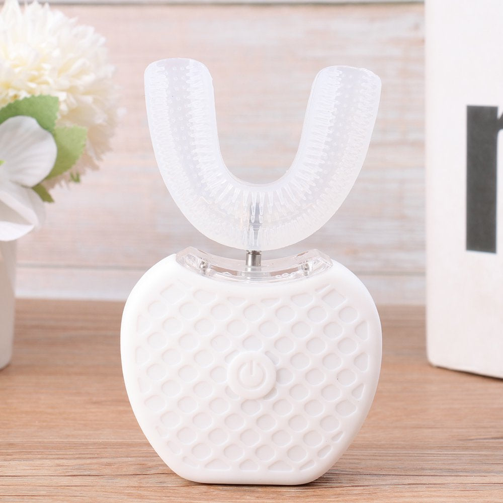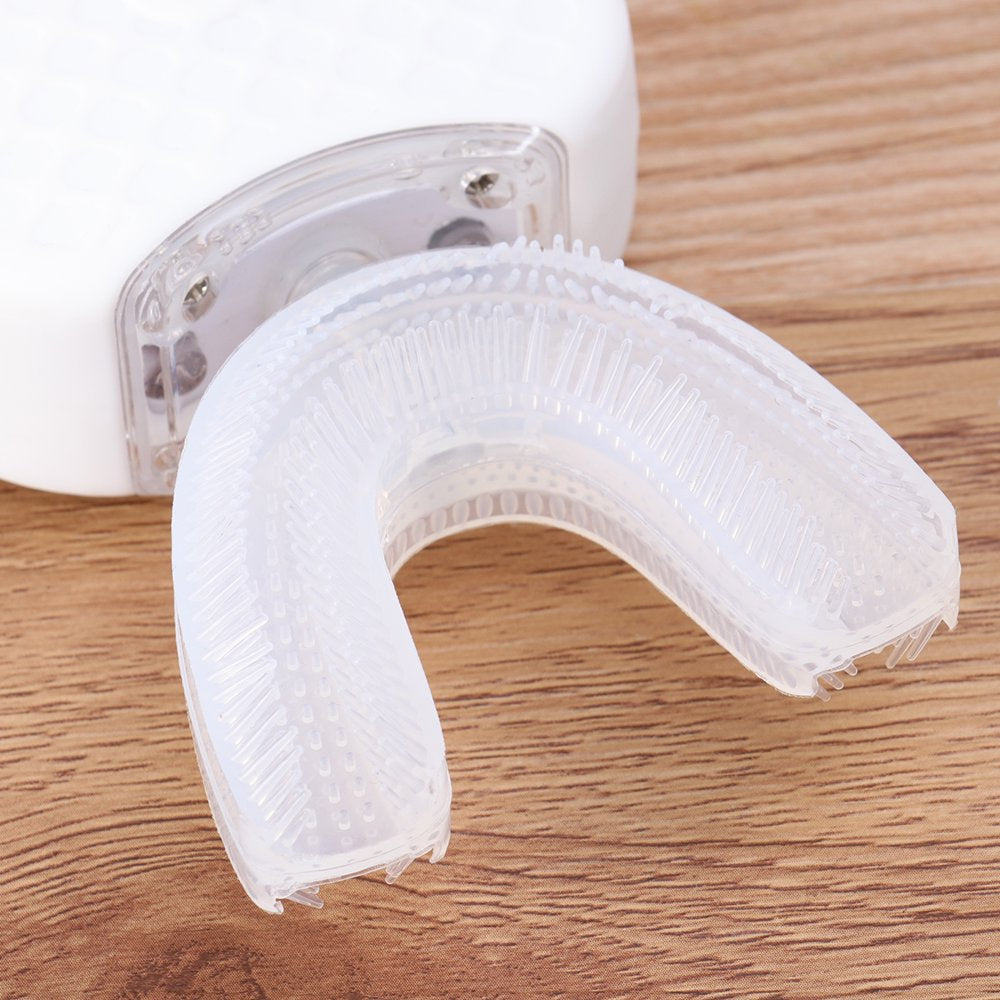 This item is an U-shaped brush head electric toothbrush. Made of soft food grade silicone material, 360 ° all-round brushing. Clean the surface of the teeth and the internal direction, each brushing can bring a quick and comfortable experience to the mouth.