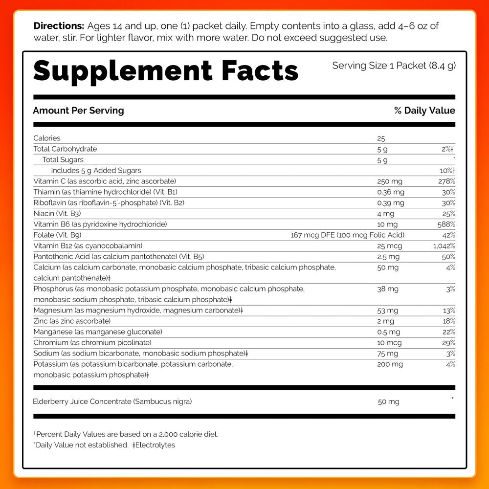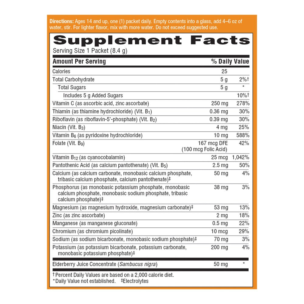 - Includes 18 single-serving packets (0.29 oz. each) of Emergen-C Original Formula in Super Orange flavor
