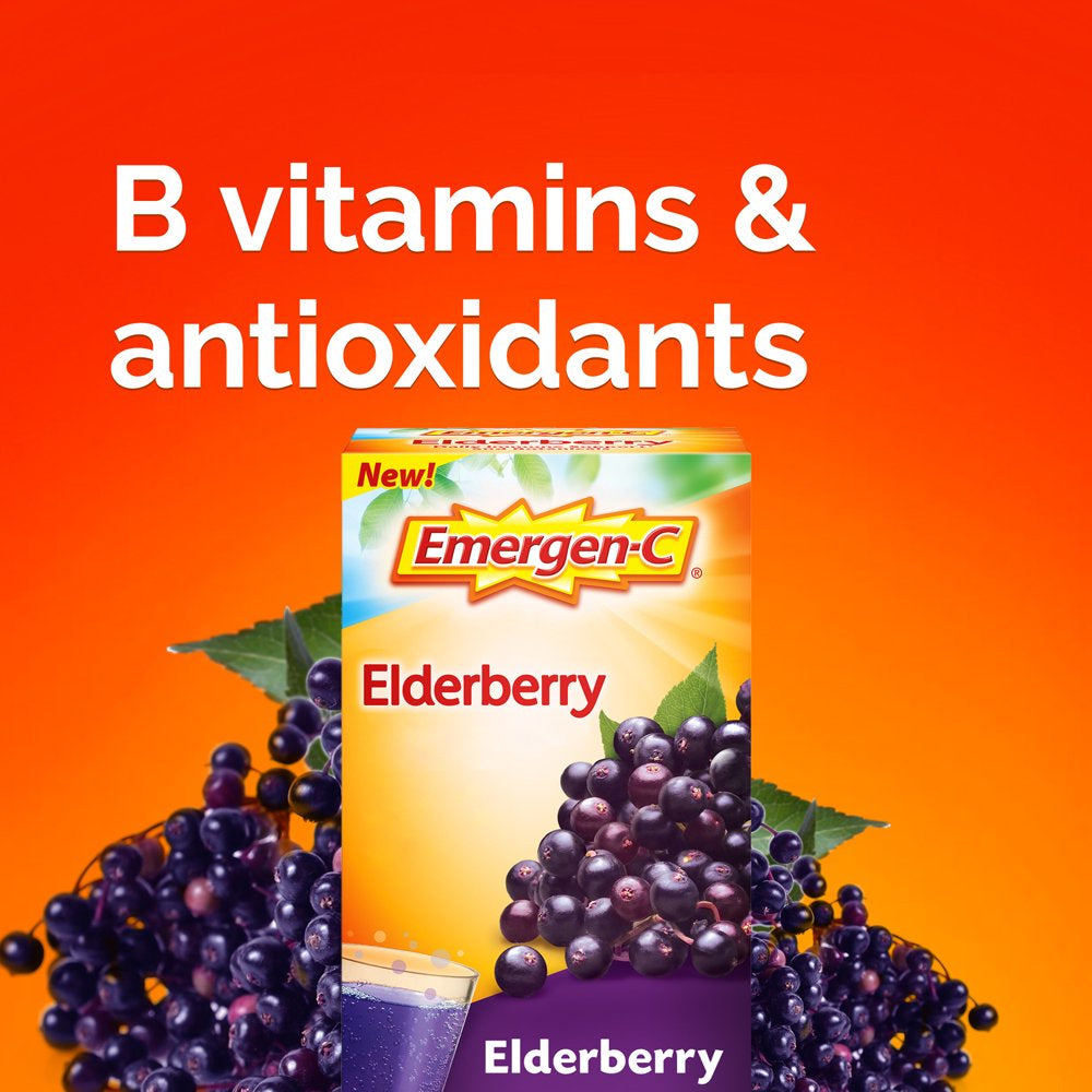 Emergen-C High Potency Vitamin C Immune Support Fizzy Drink Mix, Elderberry, 18 Ct