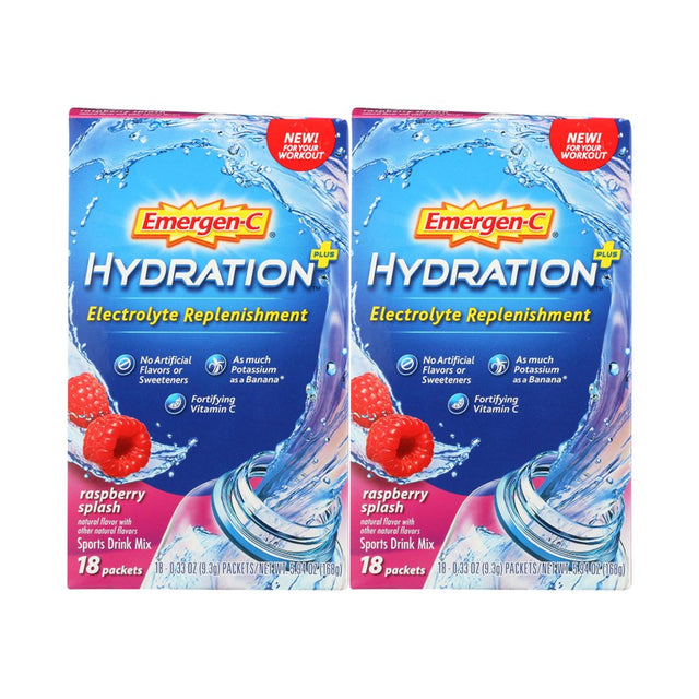 - Includes 18 single-serving packets (0.33-ounce each) of Emergen-C Hydration Plus in Raspberry flavor