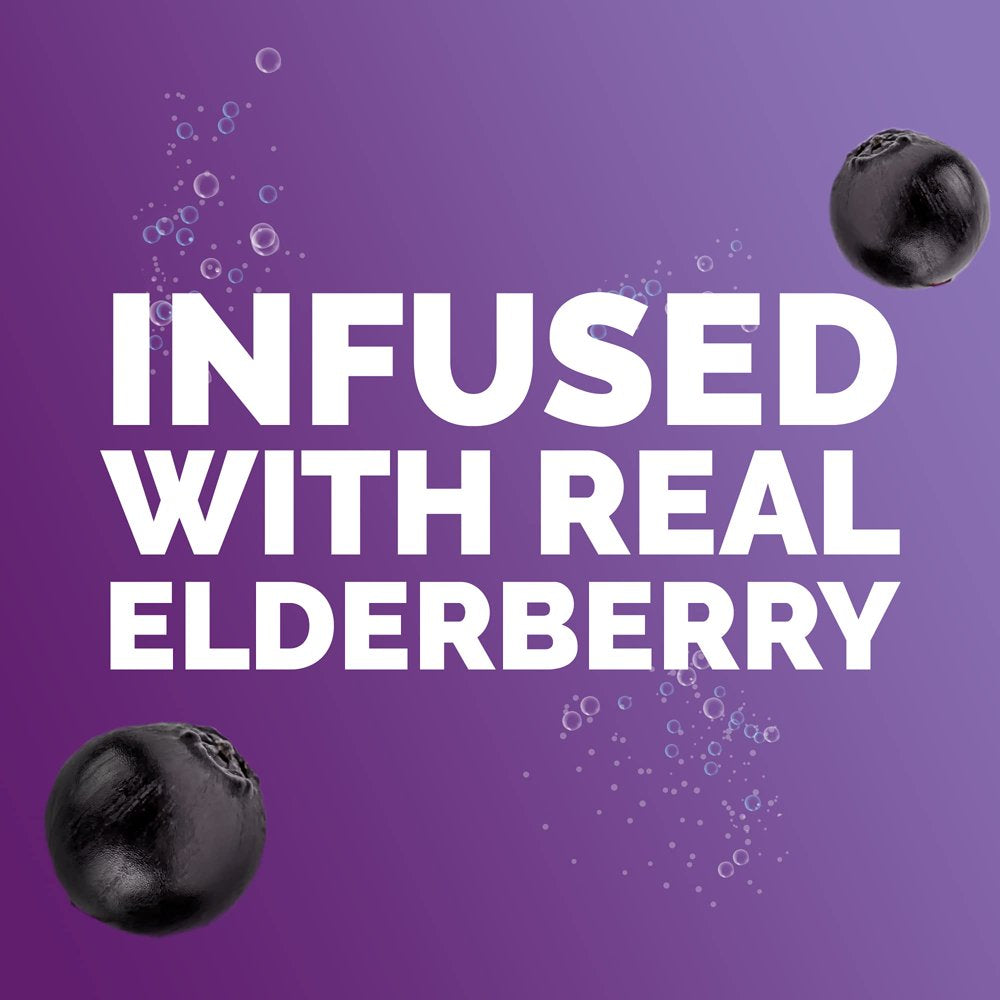 Emergen-C Immune Support Elderberry fizzy drink mix provides daily immune support infused with the natural goodness of botanicals! This great tasting Emergen-C Immune Support drink mix is packed with elderberry, natural fruit juice and flavors, vitamin C, and B vitamins. These drink packets are also vegetarian, gluten-free, and caffeine-free making the perfect addition to your holistic wellness routine and help support your immune system every day. Immune Support elderberry drink mix packets are made with 50 mg of elderberry and are infused with high potency vitamin C to support your immune system. These naturally sweetened drink powders are deliciously nutritional and make the perfect fit to your holistic approach to life. They are made from real elderberry and sunshine. Filled with the natural goodness of real botanicals, this vitamin C drink mix provides the perfect start to maintaining your health, supporting your immune system, and strengthening your body. Experience the power of Emergen-C Immune Support Elderberry fizzy drink mix, in a convenient pack of 18 sachets, perfect to take on the go!