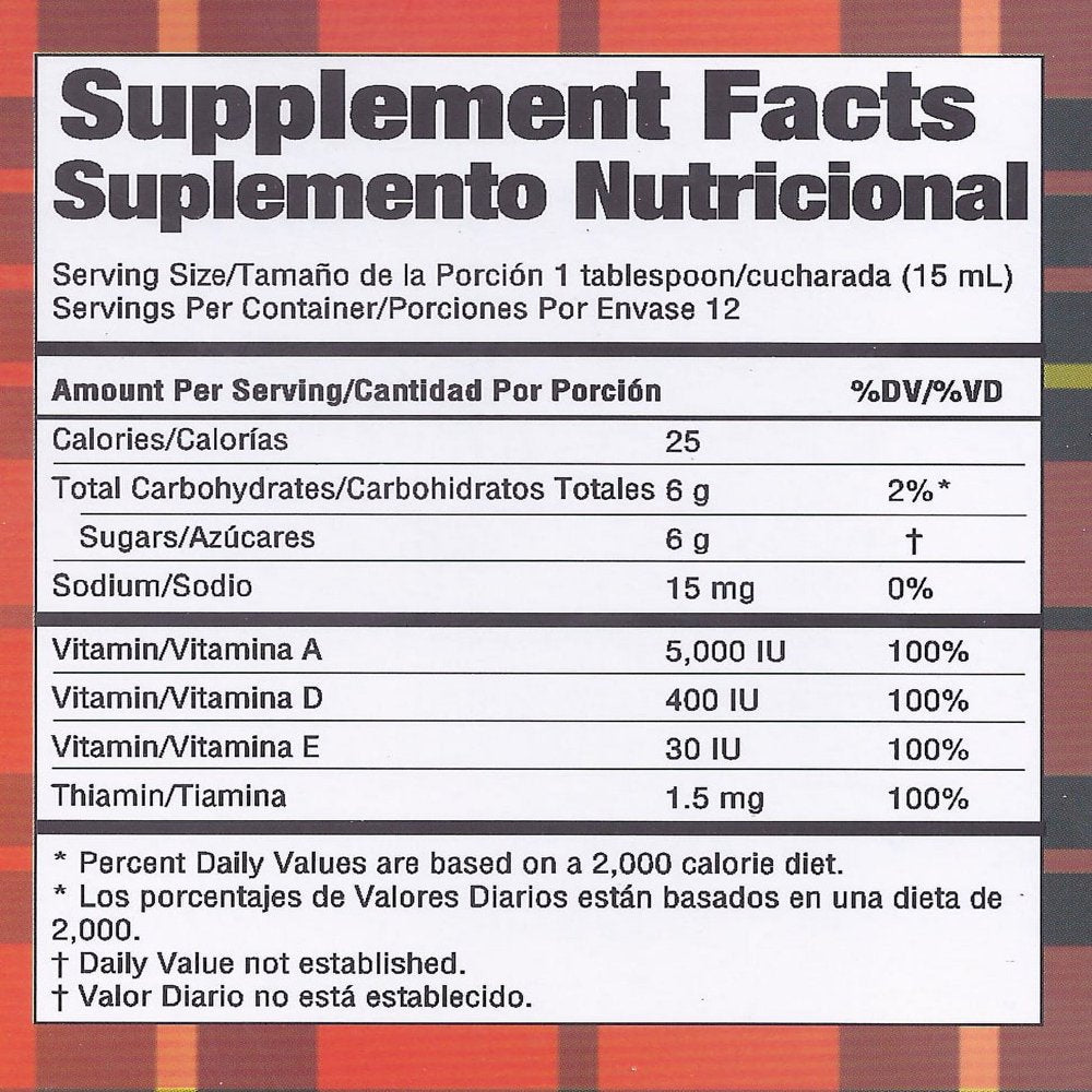 Vitamin supplement rich in cod liver oil, which is a natural source of vitamins A and D, calcium and phosphorus added.