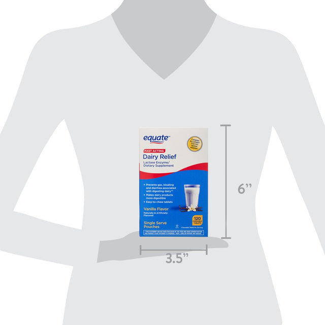 - Equate Fast Acting Dairy Relief Chewable Tablets, Vanilla Flavor, 120 Count