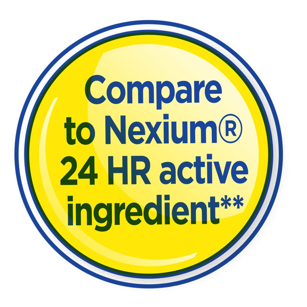 Equate Esomeprazole Magnesium Delayed-Release Capsules are essential when treating frequent heartburn. These caps have a delayed release and each is made up of 20mg. Each cap reduces acid and treats your frequent heartburn for up to 24 hours. Each pack contains a 14-day course to treat frequent heartburn. It may take one to four days to see the full effect of these capsules. These can be compared to Nexium 24 HR active ingredient. Help get your heartburn under control with the Equate Esomeprazole Magnesium Delayed-Release Capsules.