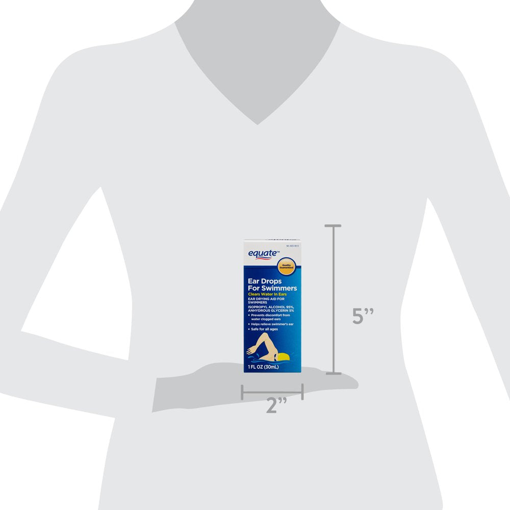 Avoid the annoyance of clogged wet ears with Equate Ear Drops for Swimmers. Our ear drop formula contains isopropyl alcohol and anhydrous glycerin, which work together as an ear drying aid to eliminate discomfort from water-logged ears. Whether you've been swimming, bathing, showering, or doing any other water-related activity, these ear drops have you covered. Simply apply 4 to 5 drops in each affected ear and allow to dry. Your ears will be back to normal in no time.