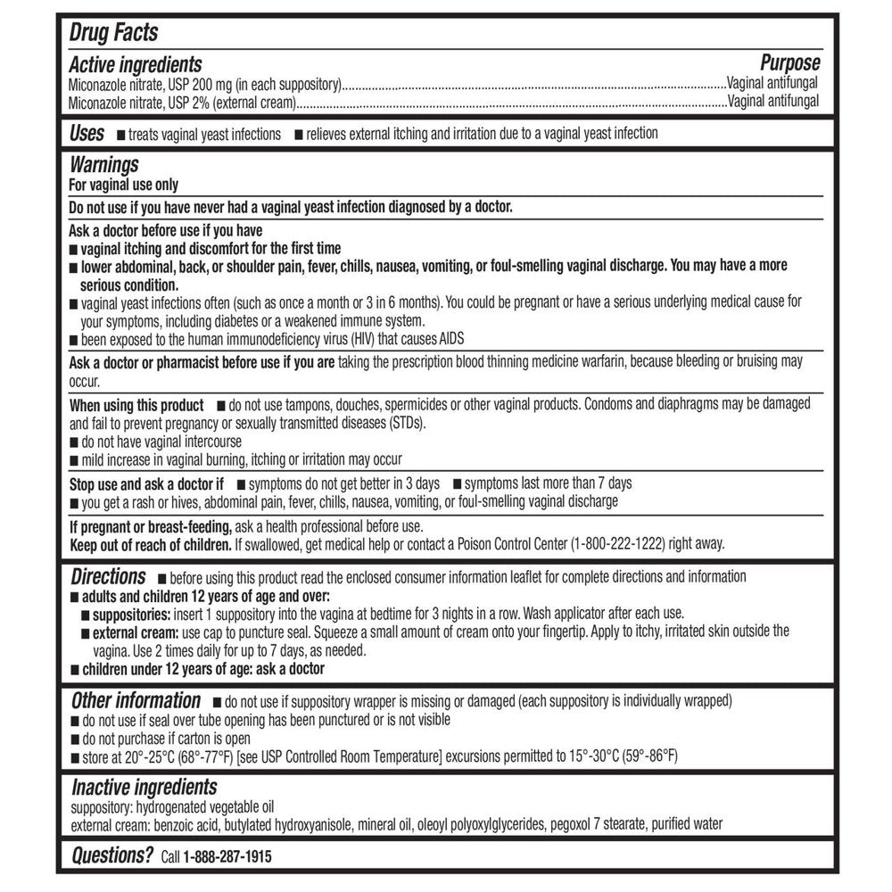 Relief is only three days away with our Equate Miconazole 3-Day Vaginal Cream Treatment Combination Pack. Packed with miconazole nitrate, one dose per day of this powerful, over-the-counter vaginal antifungal cream will stop the growth of yeast causing the infection. Each box contains one tube of vaginal cream and three suppositories with applicators to cure yeast infections from the inside out. This soothing cream can be applied to the skin outside of the vagina to relieve the uncomfortable external itching, burning, irritation, and inflammation that often accompanies a vaginal yeast infection. Start your path to recovery today with the Equate Miconazole 3-Day Vaginal Cream Treatment Combination Pack.