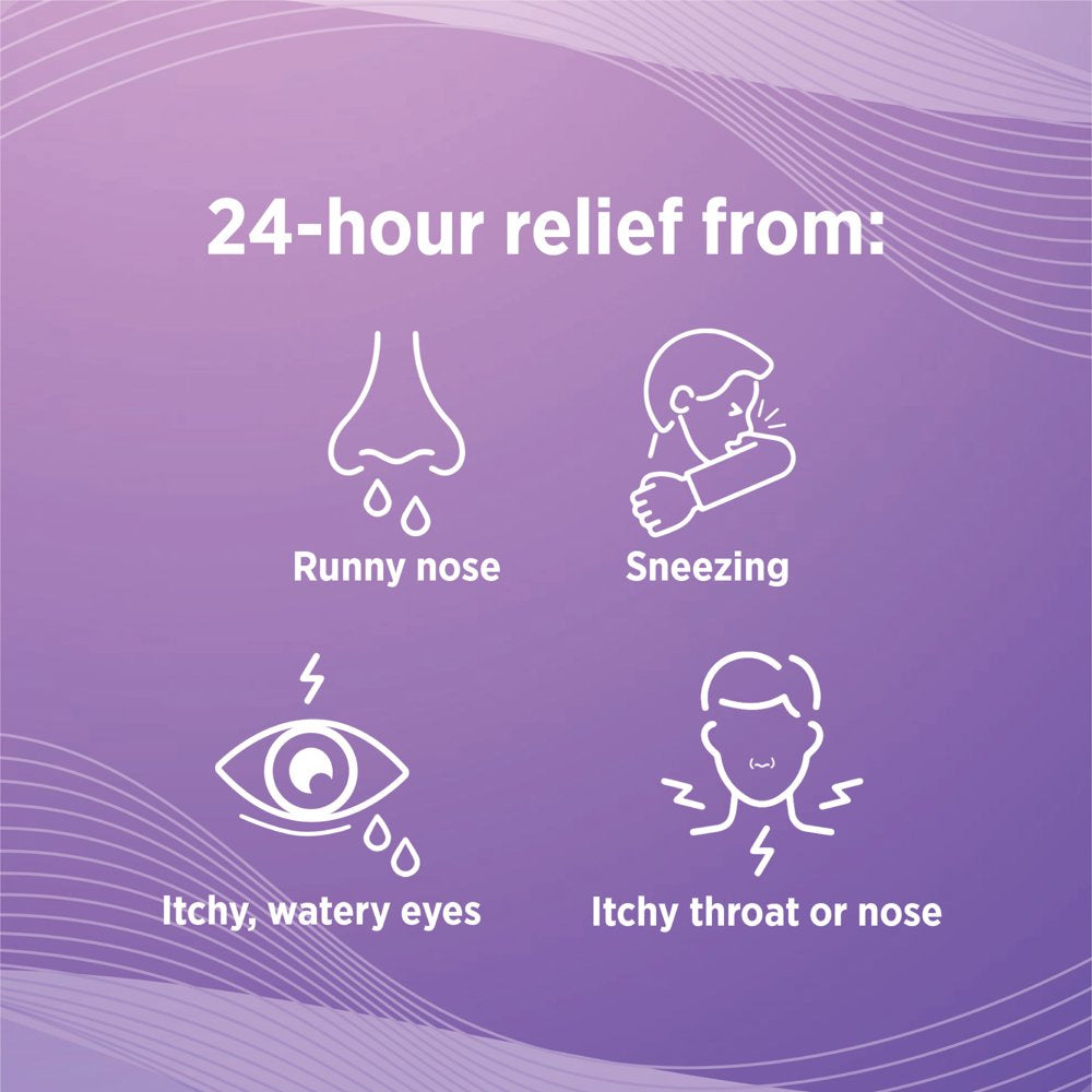 - 24-hour relief of sneezing, runny nose, itchy watery eyes, and itchy nose or throat