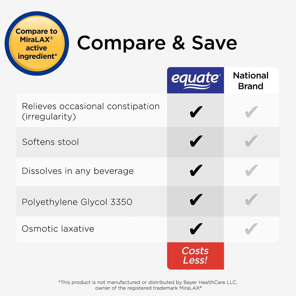 Equate Polyethylene Glycol 3350 Mix-In Laxative Packets, 10 Count: