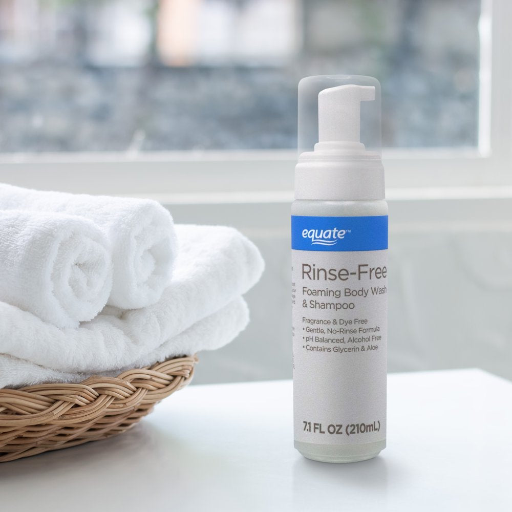 - Equate Rinse-Free Foaming Body Wash & Shampoo, 7.1 fl oz