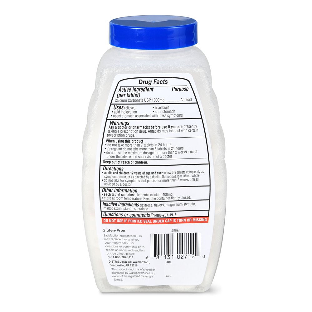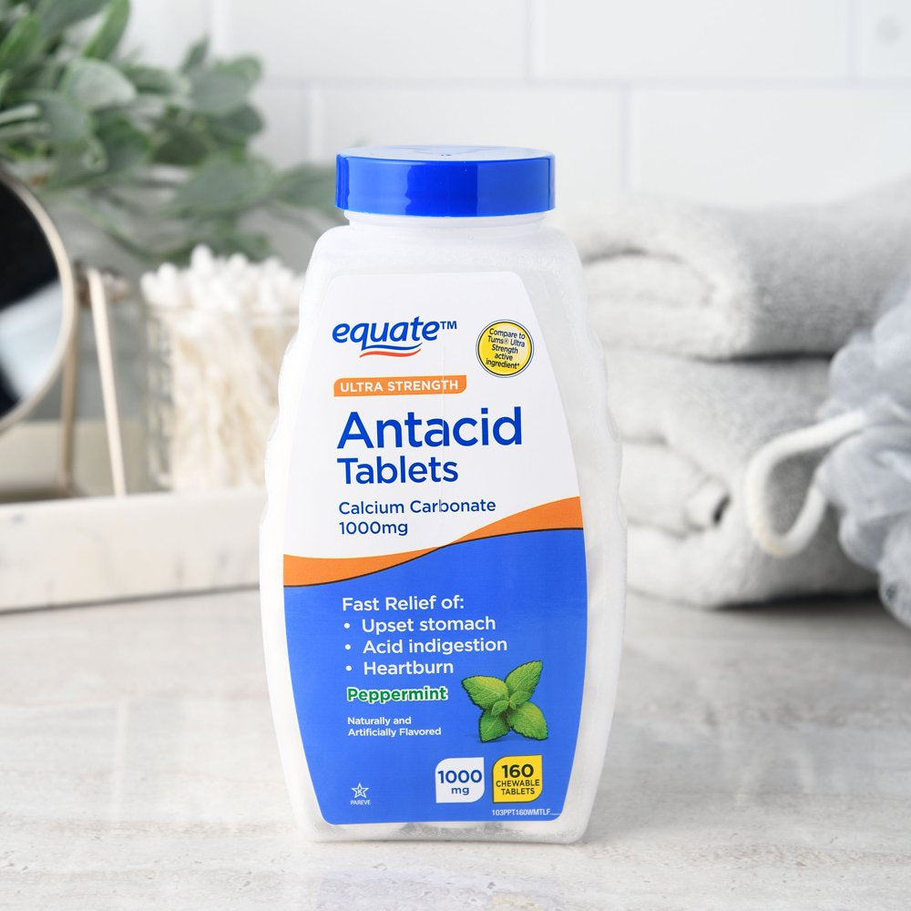 - 160-count flip-top bottle of 1000mg Equate antacid tablets