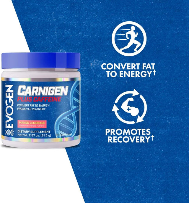 Evogen Carnigen plus Mango Lemonade | Carnitine + Caffeine Fat Burning Powder, Carnitine Tartrate, Acetyl-L-Carnitine, Carnitine Orotate, Carnitine Fumarate, Bioperine