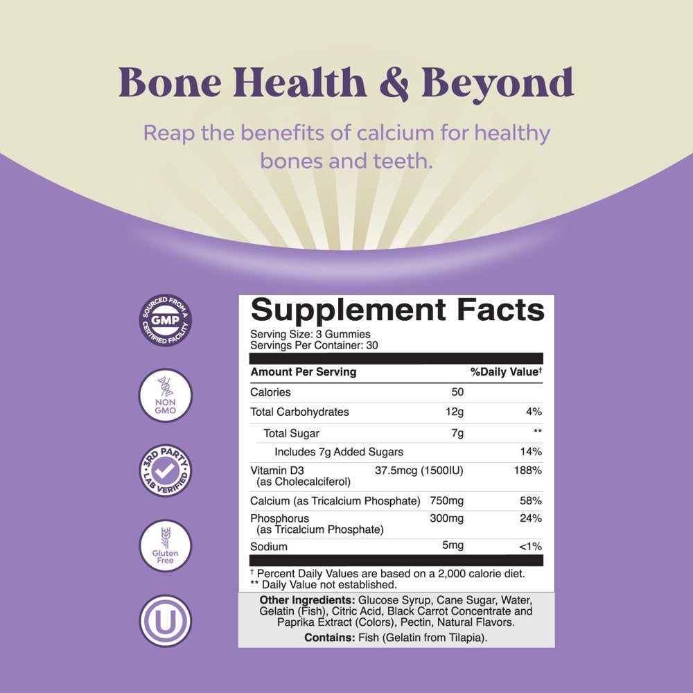 - High Potency Calcium - Experience the power of our tasty gummy vitamins that are packed full of nutrients and get your daily nourishment for bone health with our calcium supplement for women and men