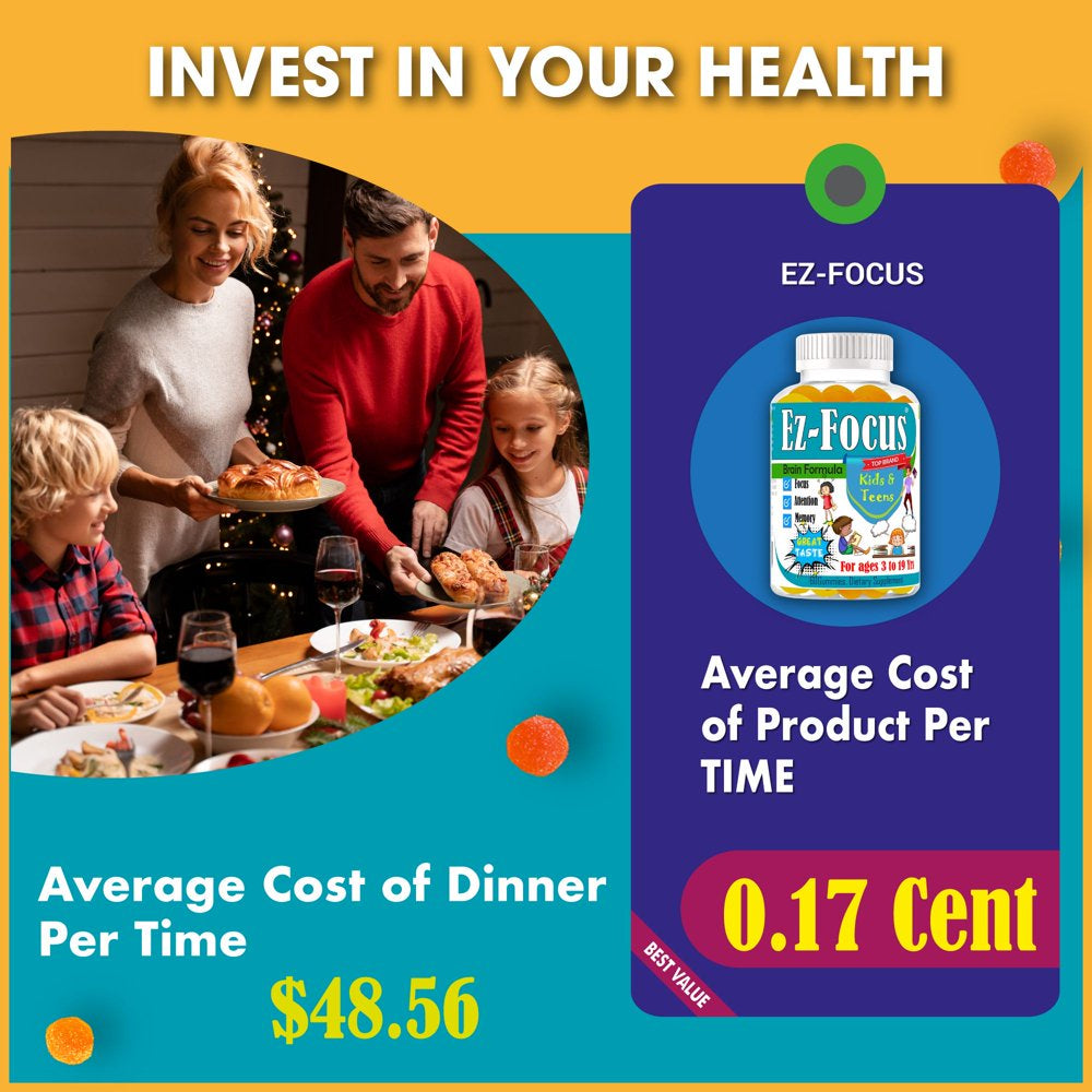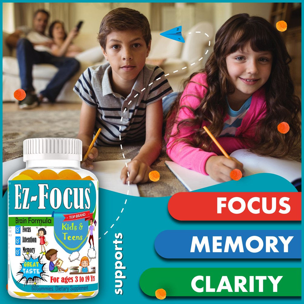 - KIDS FOCUS GUMMIES MEMORY BOOSTER FOR KIDS AND TEENS: Ez-focus brain focus vitamins for kids with omega 3 formulated specially for kids and teens support attention on their tasks. Chewable focus gummies kids brain focus. Kids focus formula for memory and focus vitamins for kids with omega 3, DHA to support overall brain health.