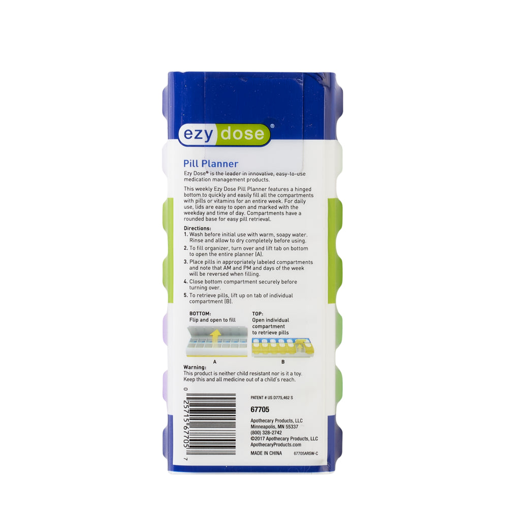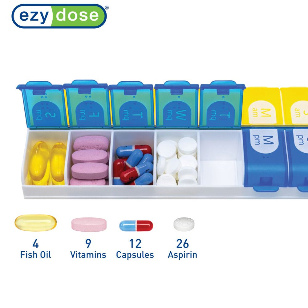 Ezy Dose Weekly (7-Day) AM/PM Pill Organizer, Large Compartments, 2 Times a Day, Colors May Vary