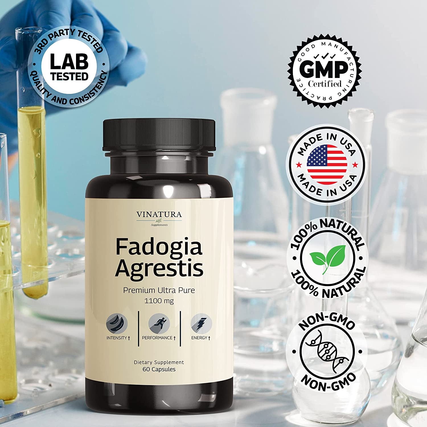 Fadogia Agrestis 1100Mg per Serving - Premium Ultra Pure **USA Made and Tested** Most Intense in Market - Promote Healthy Performance Levels, Energy - (60 Capsules) by Vinatura Supplements