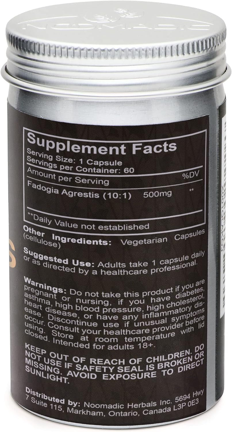 - 100%, MONEY BACK GUARANTEE: Noomadic's Fadogia Agrestis is the highest quality on the market. If for any reason you’re not satisfied, contact us within 30 days and we will issue you a full refund. We Manufacture at an Inspected Facility which practices CGMP.