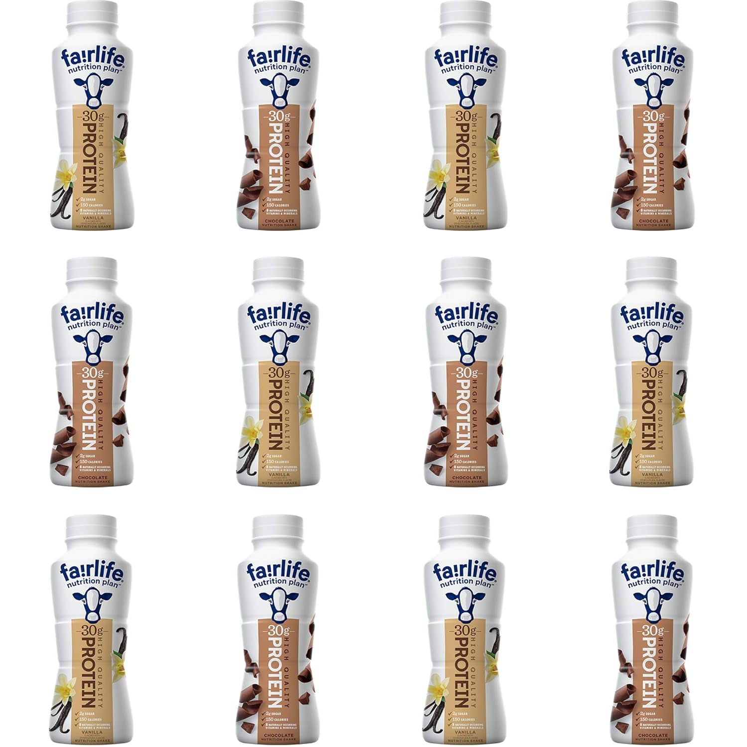 - Variety 12 Pack Contains Six Chocolate And 6 Vanilla Ready To Drink Fairlife Nutrition Meal Replacement Shakes. Each Beverage Contains 30g Of Premium Protein, Next To No Carbs And Comes In A Disposable And Easy To Carry Bottle Making Them Super Convenient To Fuel Your Workouts And Take On The Go.