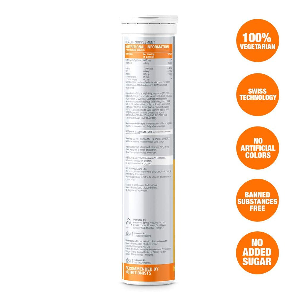 Fast&Up Nac (N-Acetylcysteine)+ Vitamin C - 600Mg Nac + 40Mg Vitamin C - For Lung Health And Liver Detox - 20 Effervescent Tablet - Strawberry Flavour.