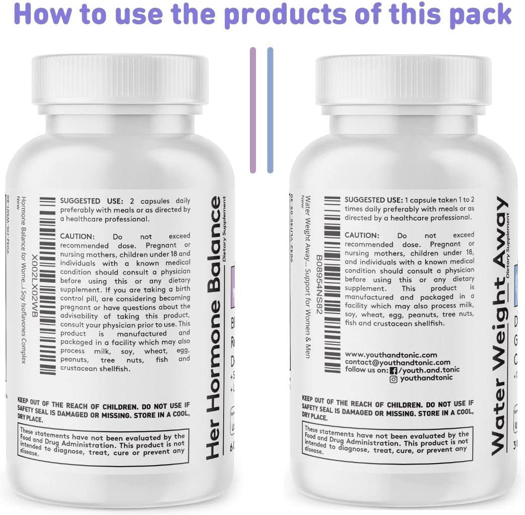 - 30 water pills + 30 colon cleanser capsules + 60 hormone balance pills | Formulated and produced in US in an inspected and certified facility following all GMP standards