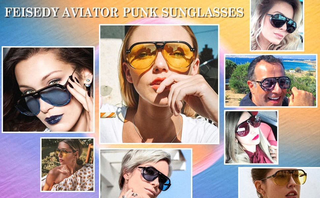 FEISEDY Women Men Vintage Aviator Sunglasses Side Shield Large Sqaure Frame Punk Style UV400 Protection B2237 - Blue / 63 Millimeters is backordered and will ship as soon as it is back in stock.