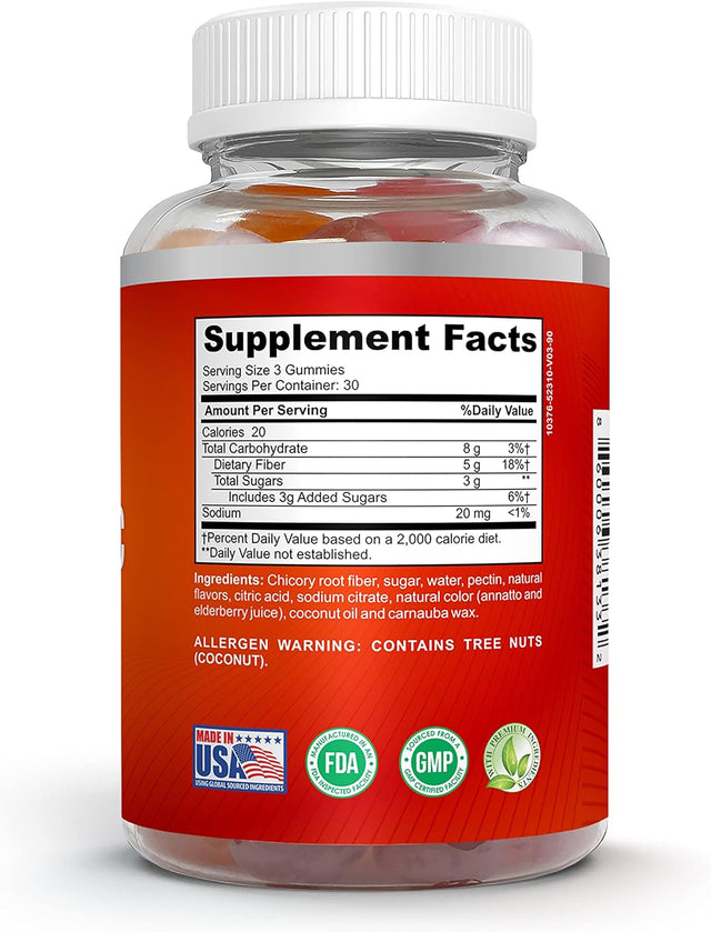 Fiber and Prebiotic Gummies for Adults, 90 Gummy Chews, Support Digestive Health, GI Tract Balance, and Regularity, Non-Gmo and Gluten Free, Natural Fruit Flavors - Single Pack