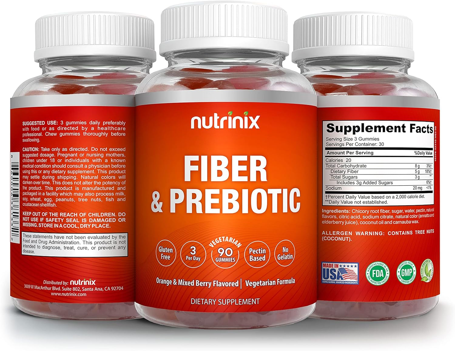 - Vegetarian-Friendly Formula – Nutrinix prebiotic and fiber gummies are pectin based which means they don’t contain gelatin or harsh additives. This makes them better for vegetarian, paleo, and keto diet plans.