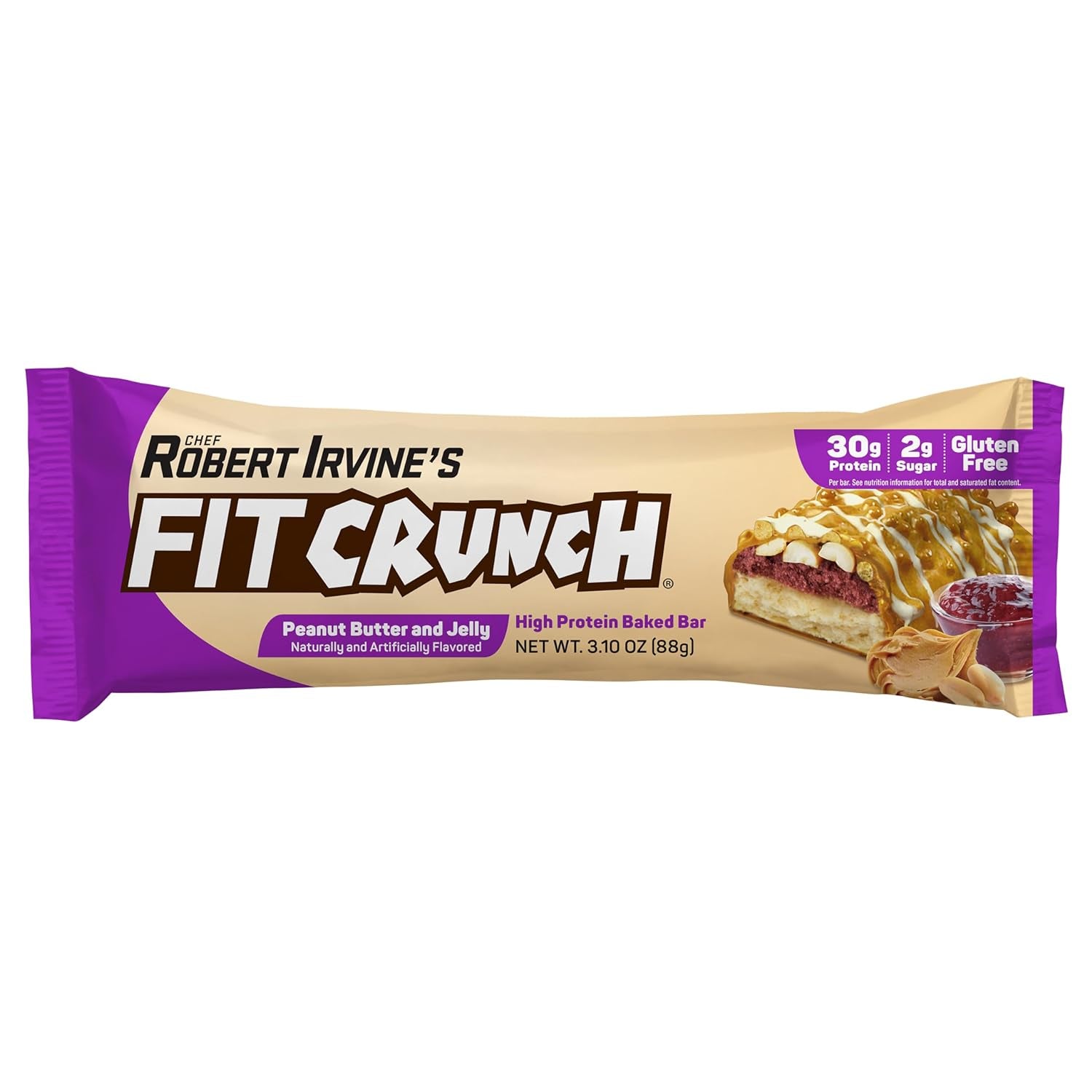 FITCRUNCH Full Size Protein Bars, Designed by Robert Irvine, 6-Layer Baked Bar, 2G of Sugar, Gluten Free & Soft Cake Core (12 Bars, Peanut Butter and Jelly) - Peanut Butter And Jelly is backordered and will ship as soon as it is back in stock.